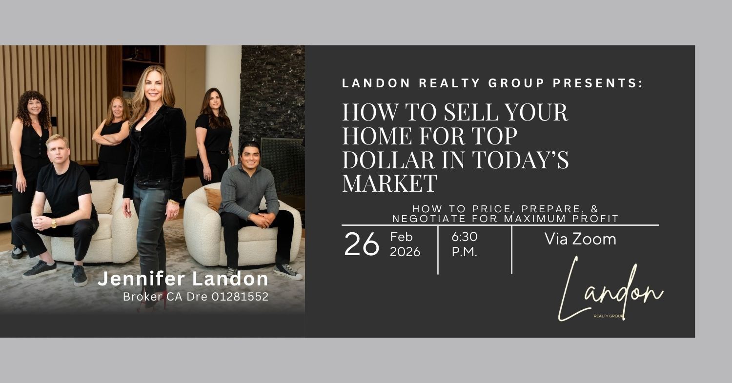 Selling your home in today’s market requires more than good timing—it requires the right strategy. Join Jennifer Landon, Broker and Founder of Landon Realty Group, for an informative and practical Zoom seminar designed to help homeowners maximize their sale price with clarity and confidence.